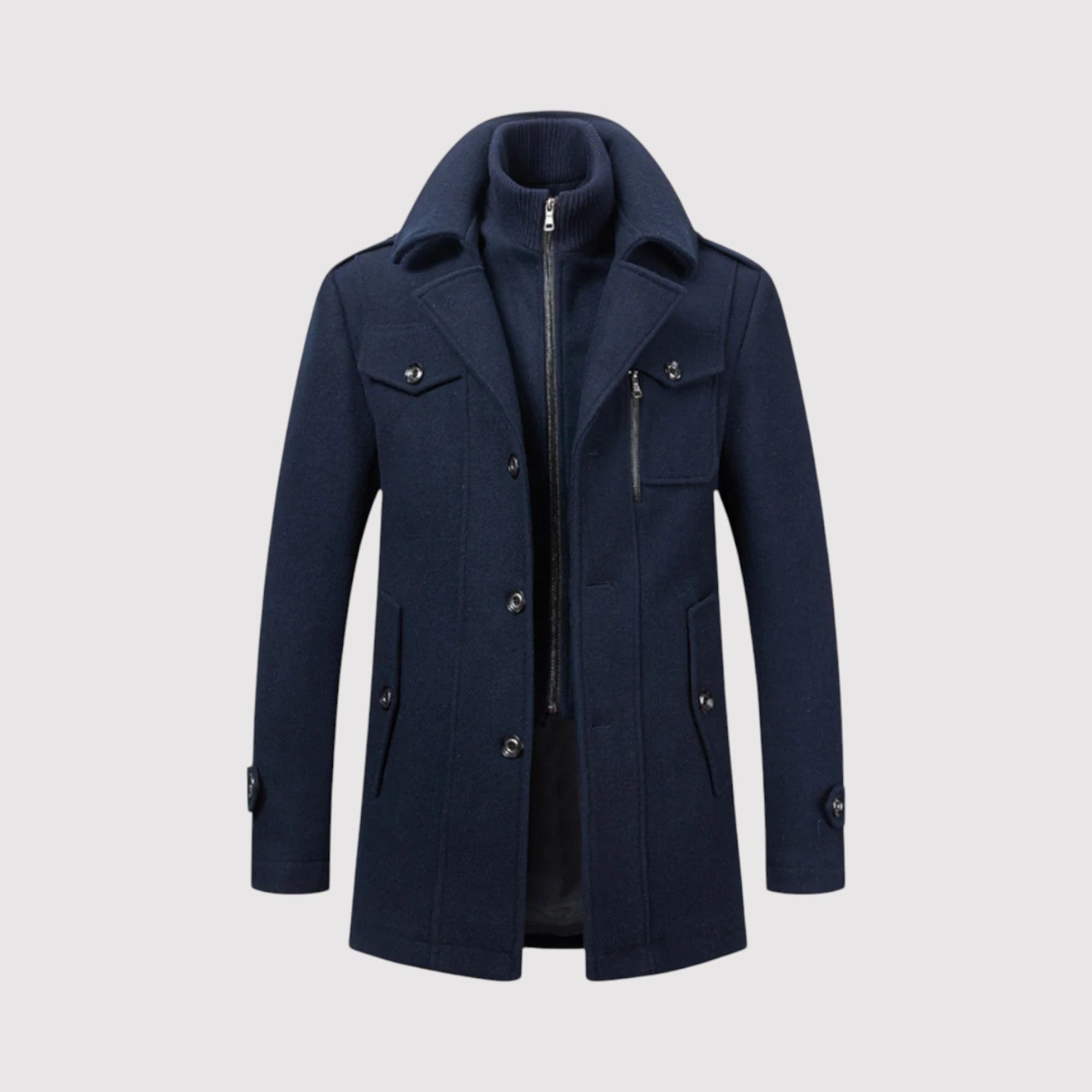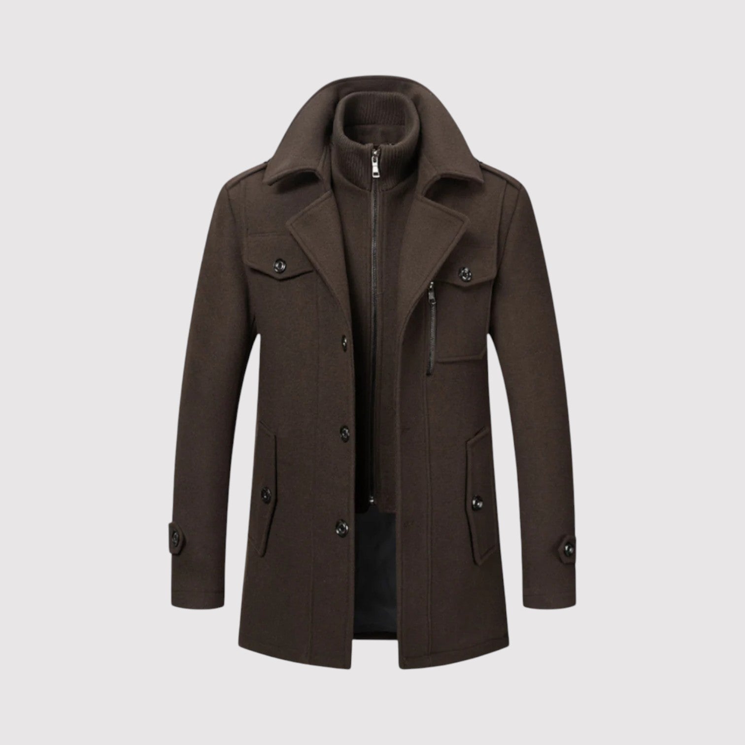 保温性を備えながらもスマートでモダンな印象を保ち、成熟した体型を引き立てるテーラード仕立てで、ビジネスにもレジャーにも最適です。