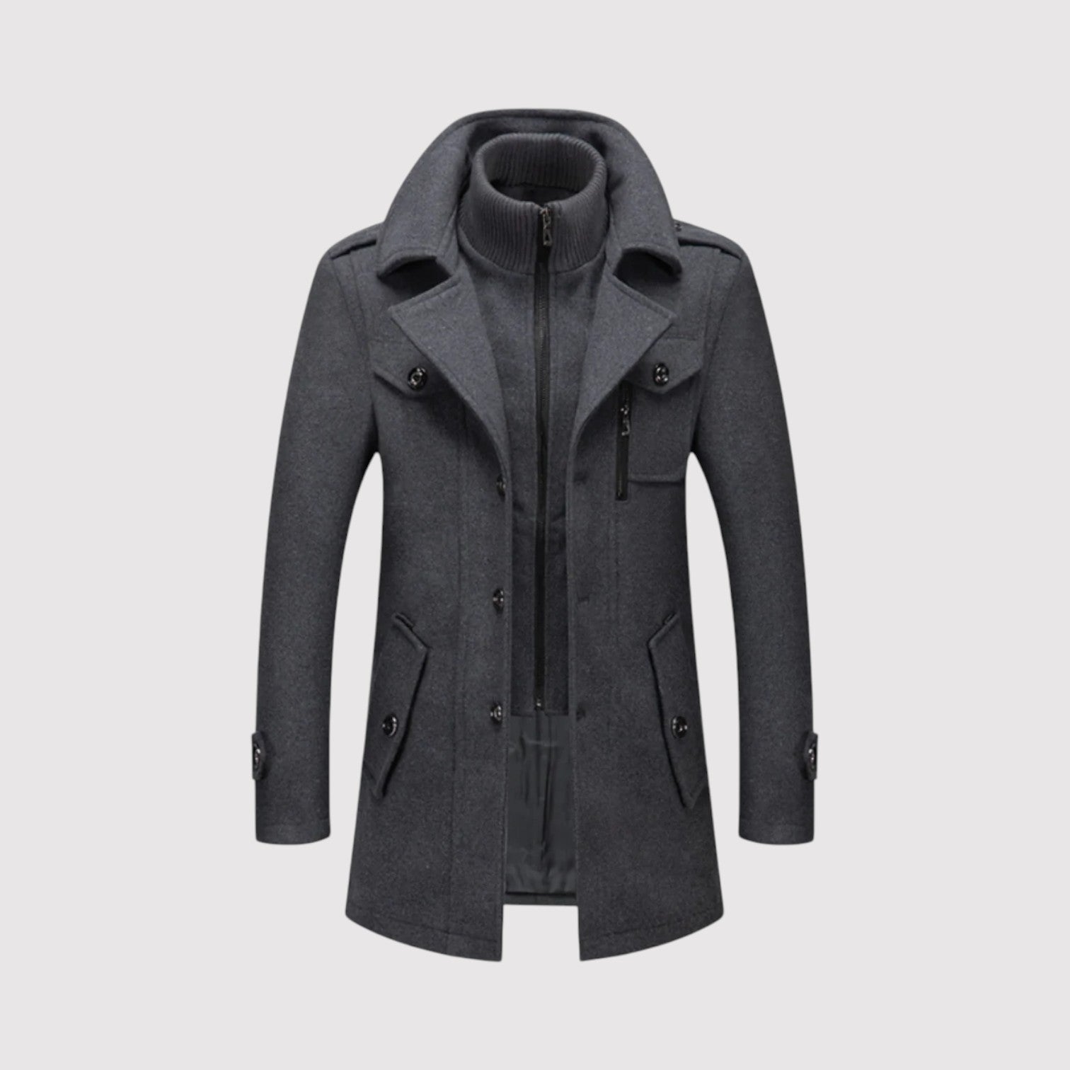 保温性を備えながらもスマートでモダンな印象を保ち、成熟した体型を引き立てるテーラード仕立てで、ビジネスにもレジャーにも最適です。