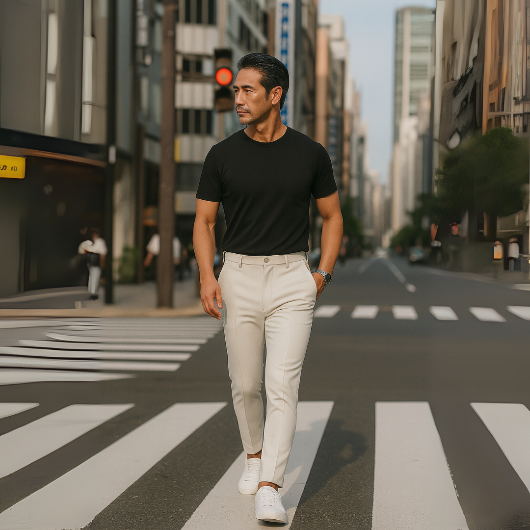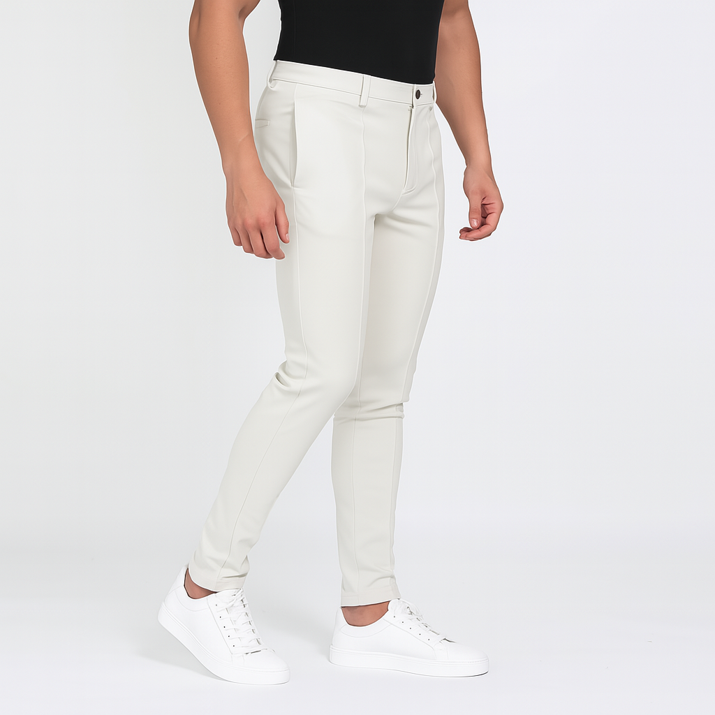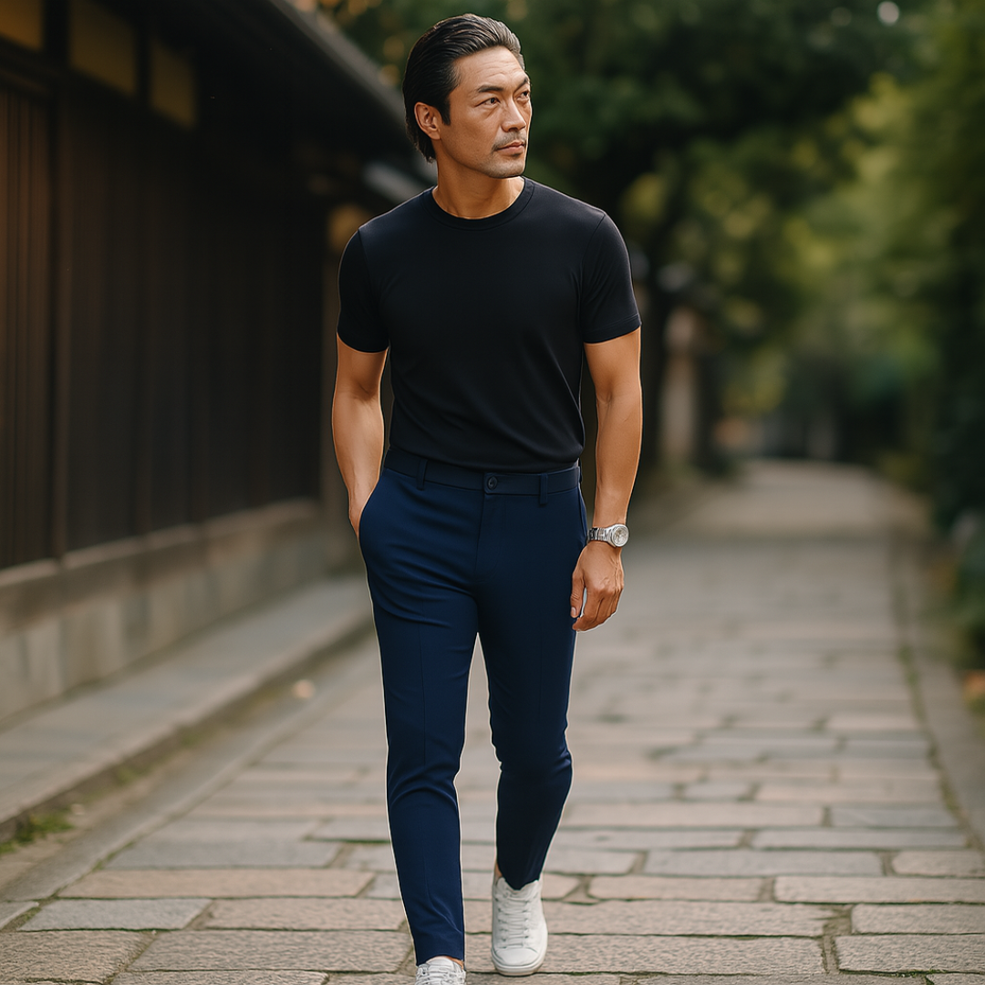 しなやかに伸びるストレッチ素材で、一日中ストレスフリーな穿き心地。体のラインに自然に沿う美しいスリムシルエットが魅力です。ビジネスから休日のカジュアルシーンまで、どんな場面でもスマートに決まります